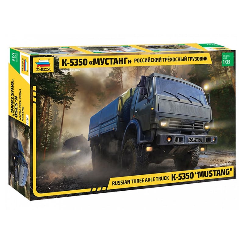 Este modelo del Kamaz Mustang de Zvezda es una réplica detallada del camión militar ruso. Ideal para coleccionistas y entusiastas de vehículos militares modernos.