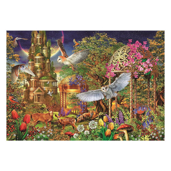 Puzzle de 1500 piezas con escena de jardín fantástico.